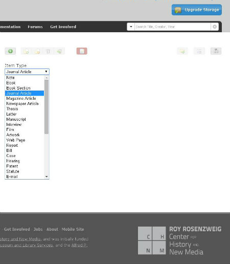 Ako brauzer ne prikazuje ovu ikonicu ili ne radite na računaru na kojem je instaliran Zotero, zapis možete kreirati i sačuvati tako što ćete se ulogovati na vaš Zotero profil na sajtu zotero.org i preko dugmeta za dodavanje (slika ispod) dodati informacioni izvor i sami upisati podatke u neophodna polja.