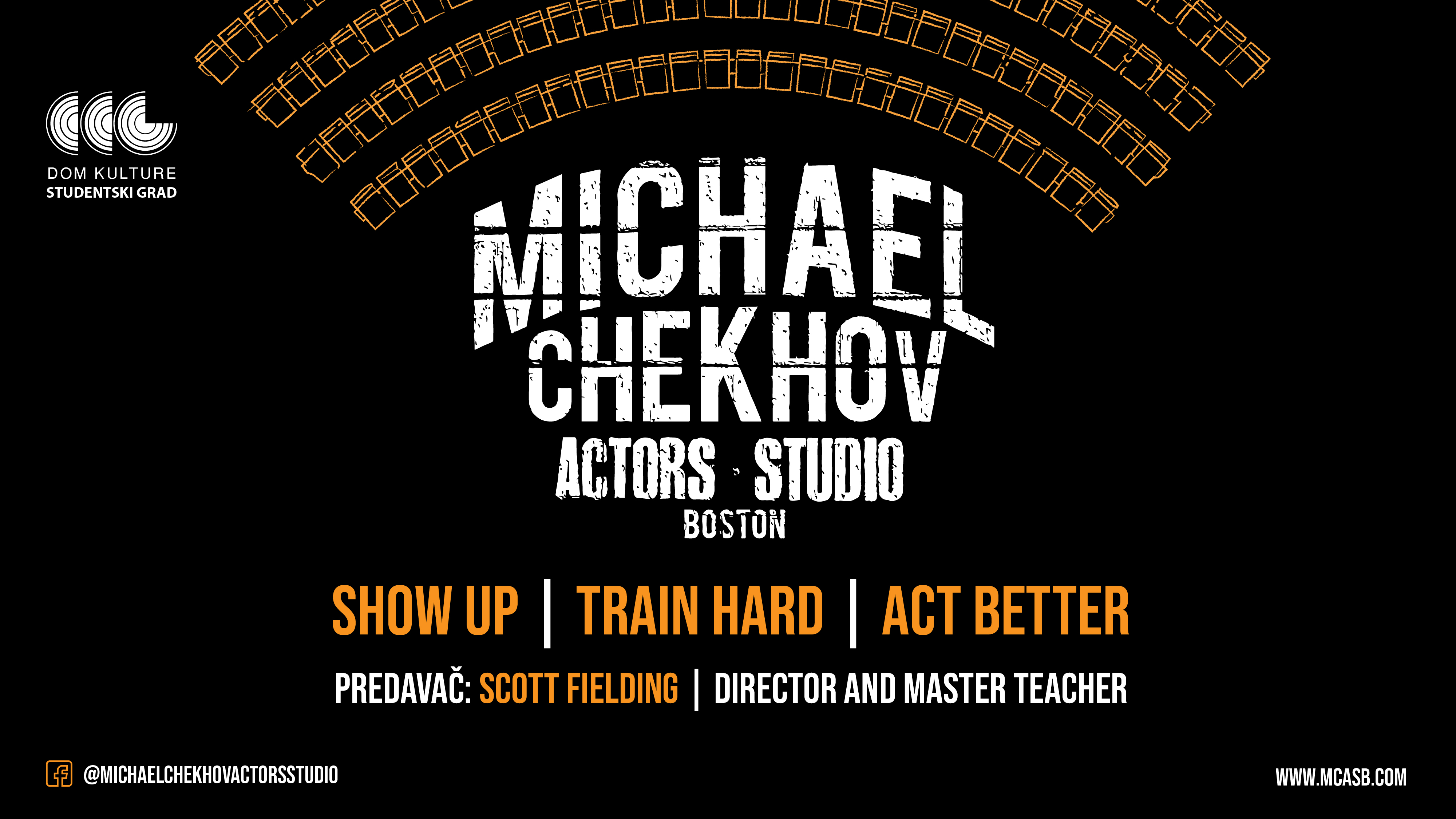 Радионица је намењена студентима глуме факултета и академија сценских и драмских уметности, као и професионалним глумцима. Циљ радионице је да оснажи и развије вештине глумаца за рад у позоришту и на филму. Полазници ће имати јединствену прилику да раде на својим вештинама са педагогом, редитељем и глумцем, Скотом Филдингом (Scott Fielding), оснивачем и директором „Михаел Чехов“ глумачког студија у Бостону (САД).