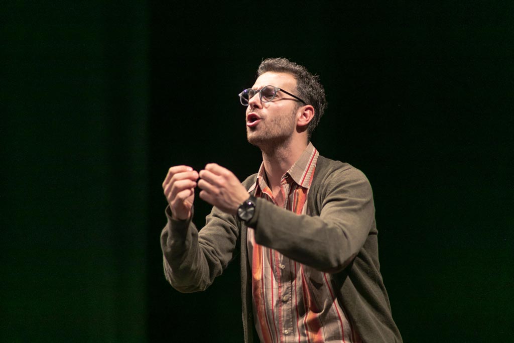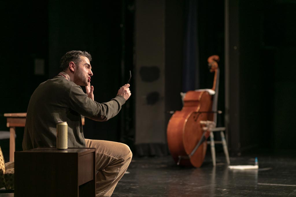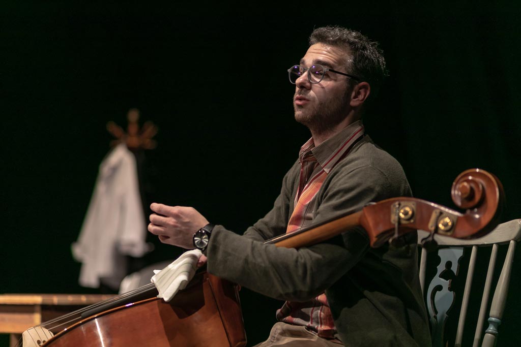 „Рад на припреми ове монодраме могао бих да сврстам у, засигурно, најважнији лични глумачки процес кроз који сам до сада прошао. Овај портрет једног уметника, тј. целовечерње дело за контрабас, пре свега је изузетан текст који досеже до стварних уметничких висина у својој приповедачкој естетици. Писац у свом комаду додирује најинтимније делове душе једног усамљеног човека и, морам признати да је већ прво читање у мени узбуркало толико много емоција да сам био потпуно сигуран да је ово прави комад за мене. Такође, сазнање да је пре тридесет година велики Предраг Пеца Ејдус играо управо овај текст, за мене је представљало пре свега велику част, али и велику одговорност коју као млади глумац носим.“