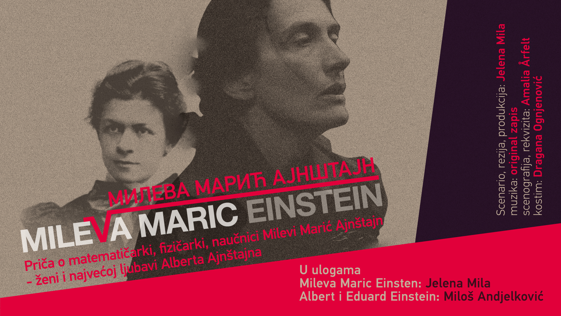 Улоге: Јелена Мила (Милева Марић Ајнштајн), Милош Анђелковић (Алберт и Едуард Ајнштајн)