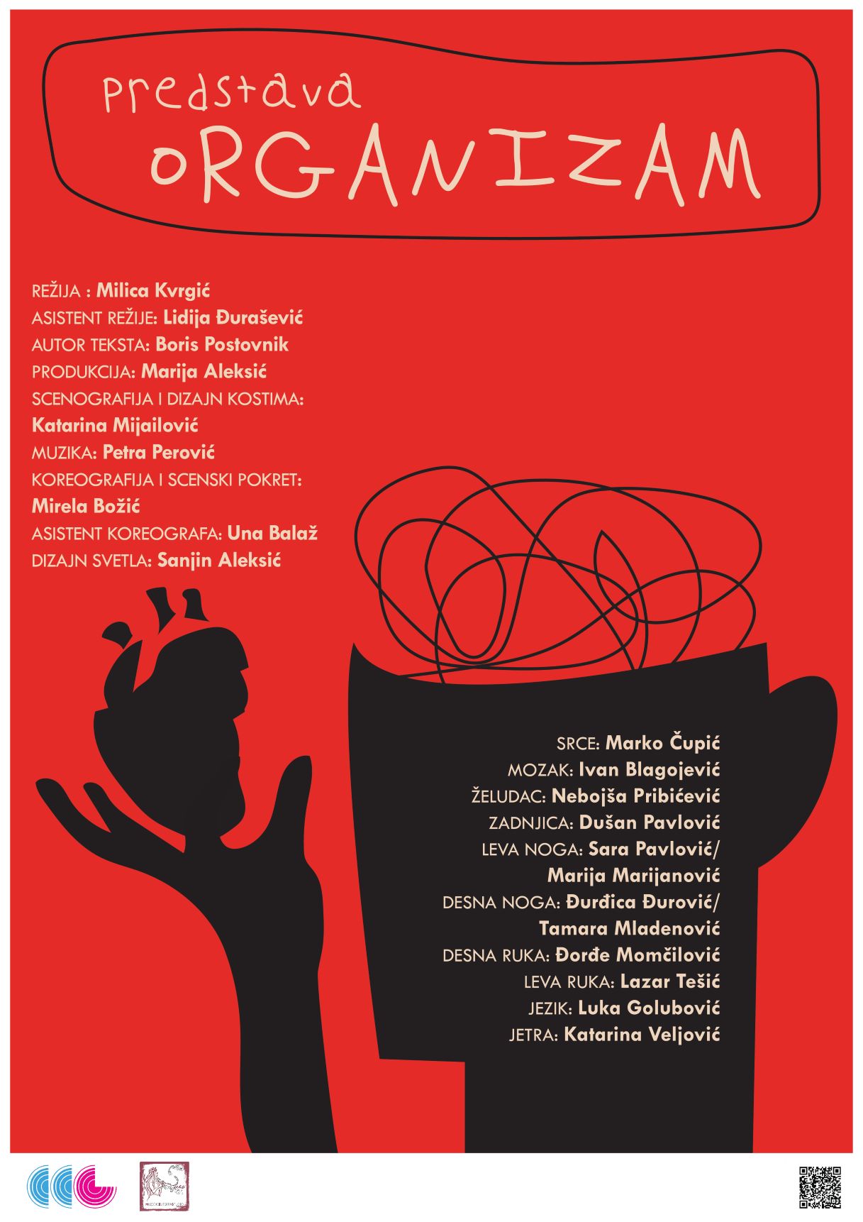 Reč rediteljke: „Neizmerno mi je drago što je Boris Postovnik imao poverenja da prepusti svoje prvo dramsko delo u ruke jedne neiskusne, ali ambiciozne studentkinje. Već na prvo čitanje „Organizam“ je okupirao moje misli. Ovaj komad na zanimljiv i neobičan način prikazuje problem savremenog mladog čoveka da pokaže svetu ono što jeste. Konstantan osećaj da moramo da se prilagodimo, često nas ograničava da iskoračimo iz svog balončića komfora u kome živimo. Ova komedija nastaje kao proizvod rada i dobre volje mladih i posvećenih ljudi. Nadam se da će ugrejati srca publike, baš kao što su i oni ugrejali moje.“